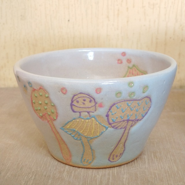 ◆直径約11cm×高さ約6,5cm ◆白系×カラフルなキノコの森 ◯素材:陶 タイラミホコ「キノコ丿森」チビマカイ(タビニデル紫)は、愛らしいカラフルなキノコたちが描かれた小さなお食事茶碗です。 サイズ感は小さめですが、デザートやおつまみなど多様なシーンでご活用いただけます。お食事の時間を楽しく彩る、ユニークなデザインが特徴です。 同じものは二つとない、あなた自身の特別な器をお楽しみください。 *なるべく実物の色味に近づけて撮影していますが、天候・お使いのモニターによって若干の違いが見られる場合がございます、ご了承下さい。 *表面にヒビやピンスポットのようなものが見受けられる場合がございますが、成型時の乾燥や土の特性(石はぜなど)、表面の釉薬によるものでご使用上問題ございません、デザインの一部としてお楽しみください。 また釉薬の掛かかり方によっては 濃い部分と薄い部分がございます。 こちらも使用には全く問題ありません。 陶器の風景としてご理解頂けますようお願いいたします。 【ご使用上の注意】 ・使い始め はじめて使う前には目止めをすることをおすすめします。 素地の粒子間の隙間や釉薬の貫入(釉薬に生ずるヒビ状のもの。キズではありません)などの目が詰まって、料理の水分や油分が浸透しにくくなり、汚れや臭いの原因を防ぎます。 ☆使いはじめにたっぷりのお水に半日くらい浸して、水分をふき取ってから使用してください。仕舞う時は必ずよく乾燥してからお願いいたします。 【お手入れ方法】 ・柔らかいスポンジと中性洗剤でやさしく手で洗ってください。 水分を含んだまましまうとカビや臭いの原因になりますので必ずよく乾燥させてから収納してください。 ※食器洗浄機・オーブンはご使用にならないでください。 ・・・・・・・・・・・・・・・・・・・・ ゆうぱっくでお届けします。ご希望の到着日時等ございましたら備考欄にご記入ください。
