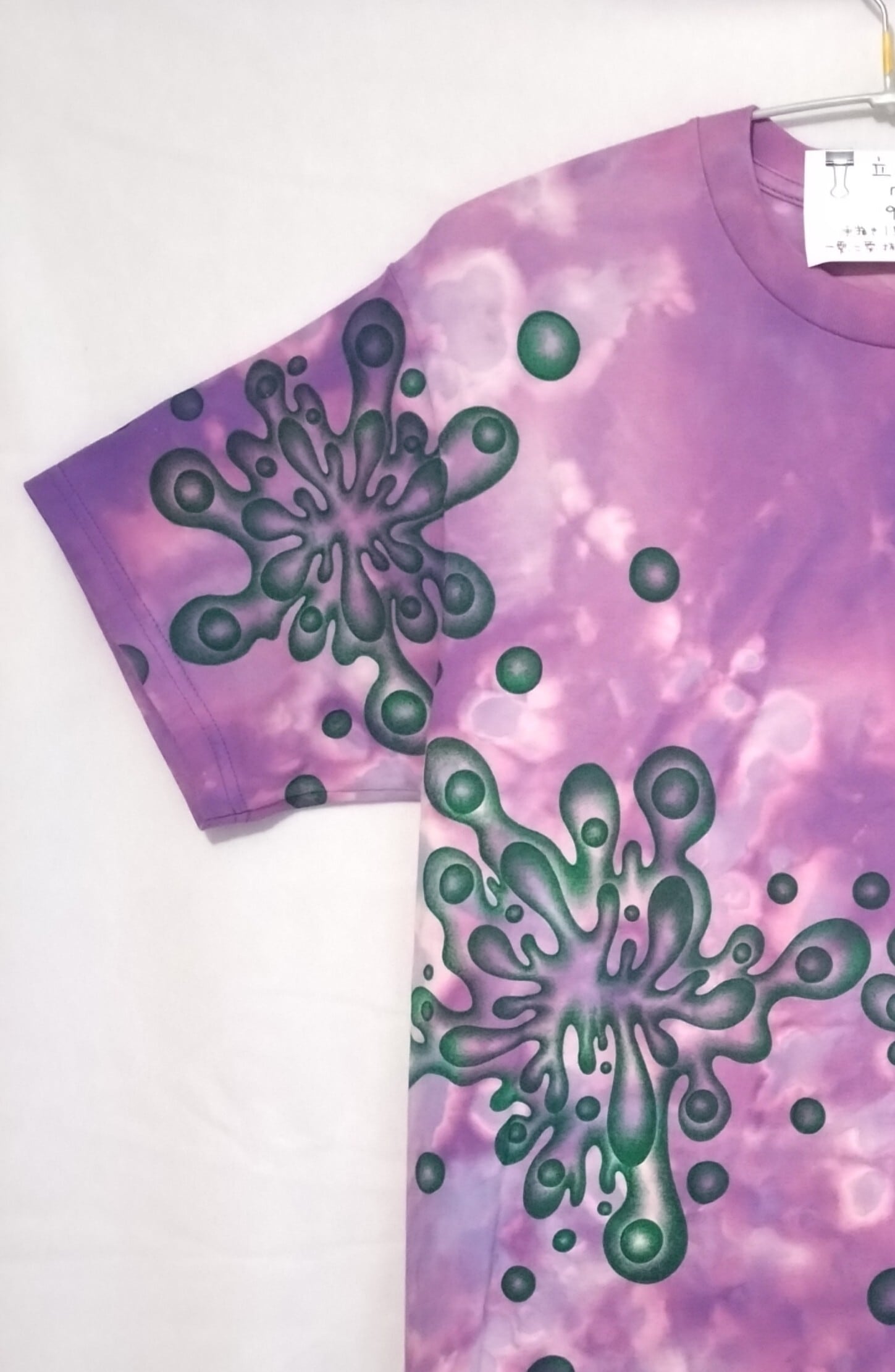 自身でタイダイをしたTシャツをキャンバスに