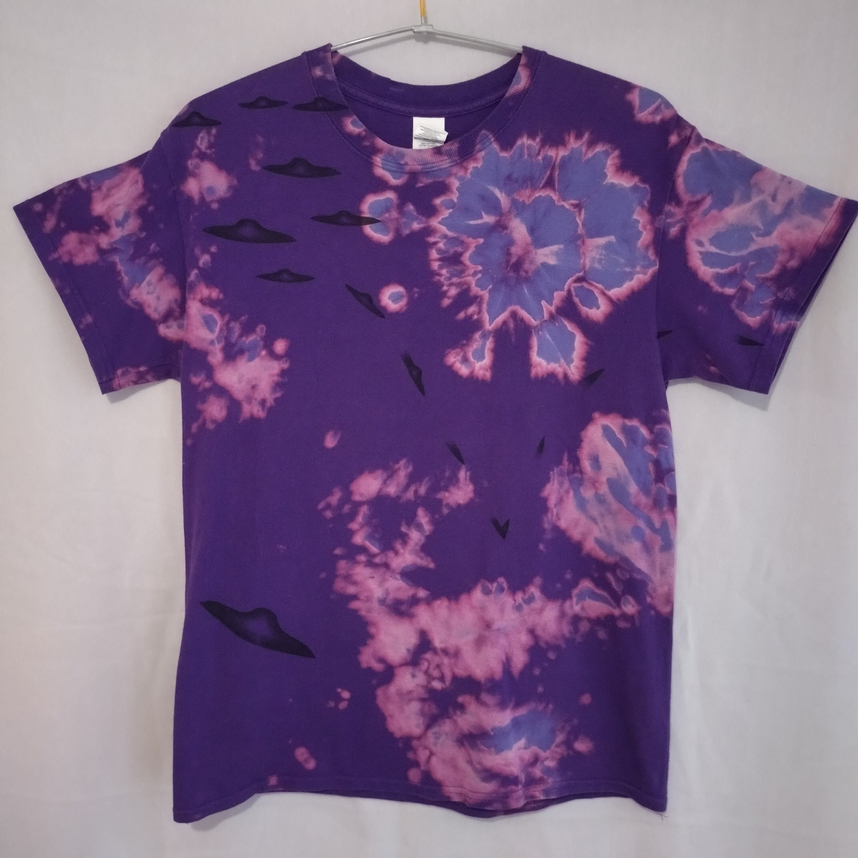 立花ミントン・手描き一点物「UFO襲来」タイダイパープルmix