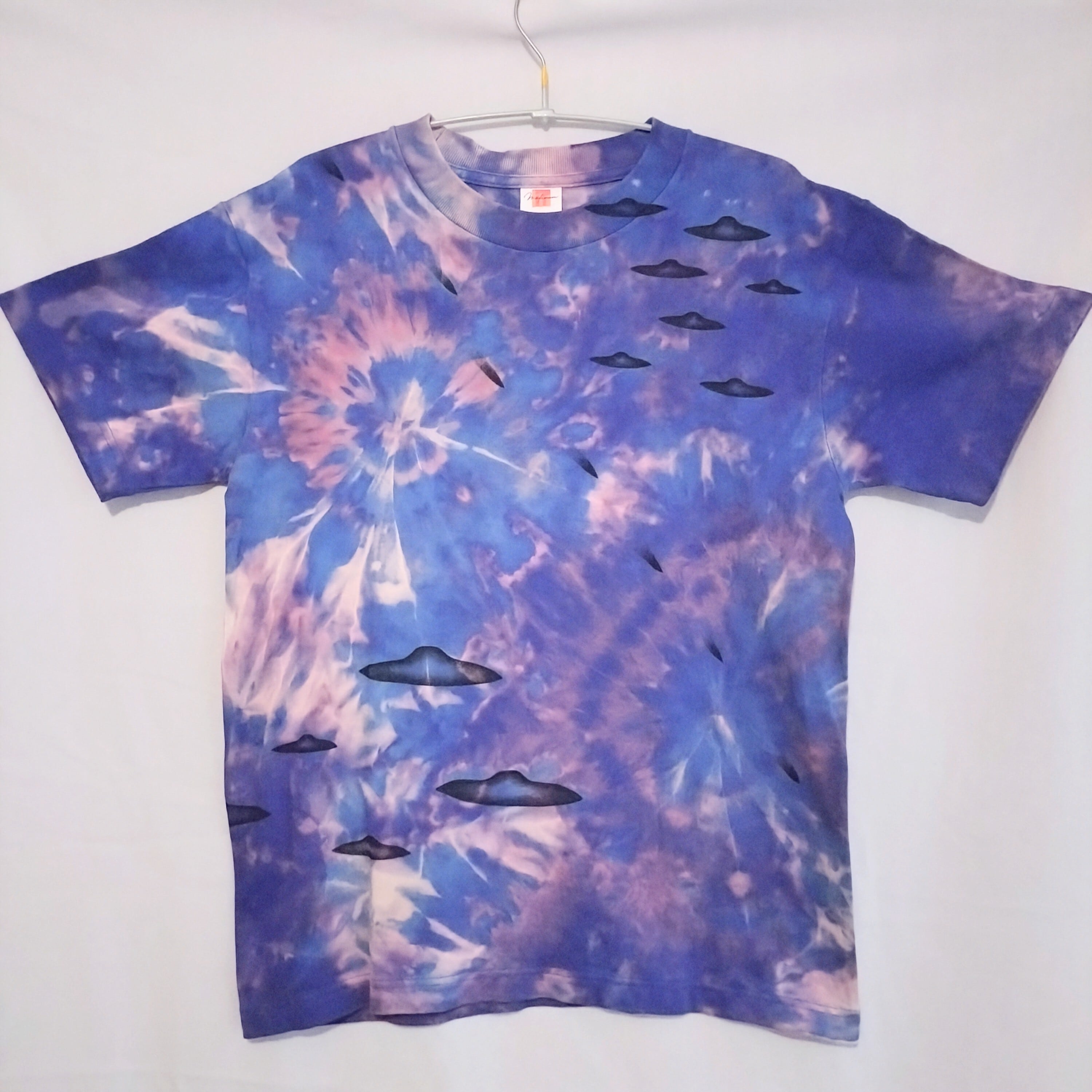 立花ミントン・手描き一点物「UFO襲来」タイダイパープル系mix