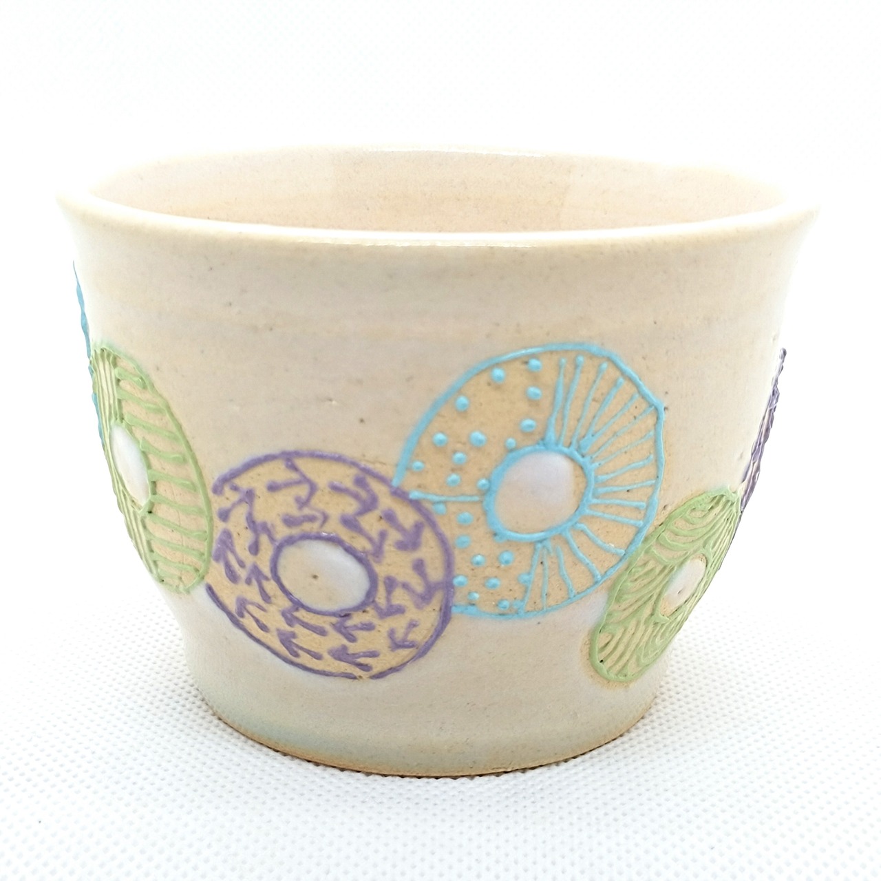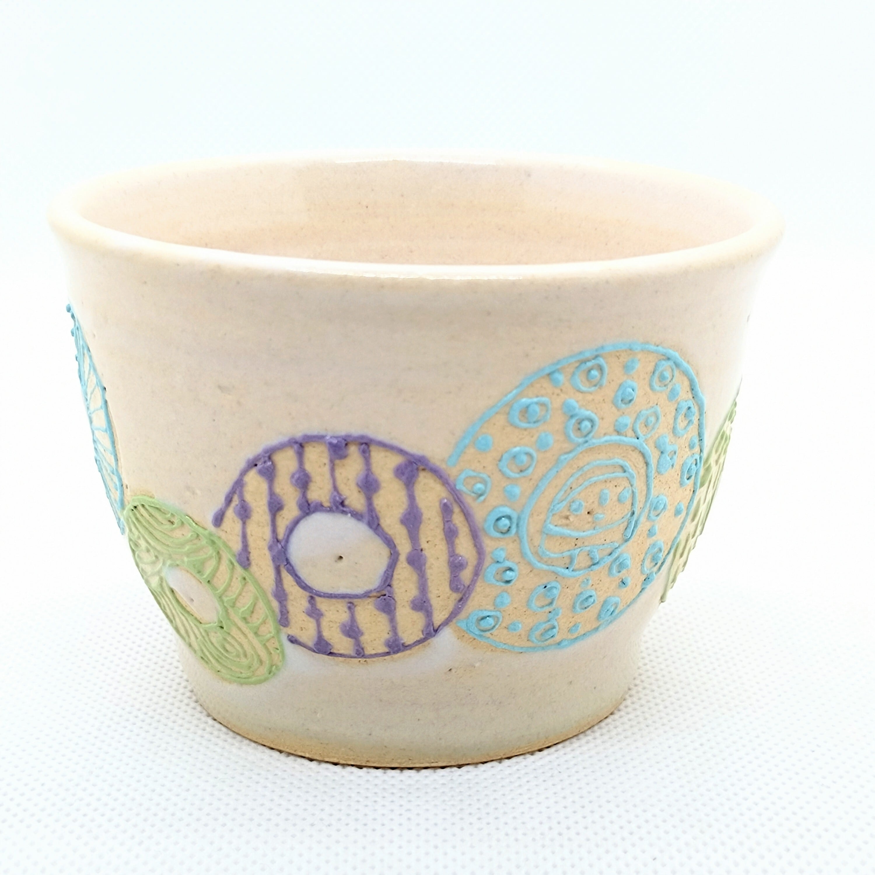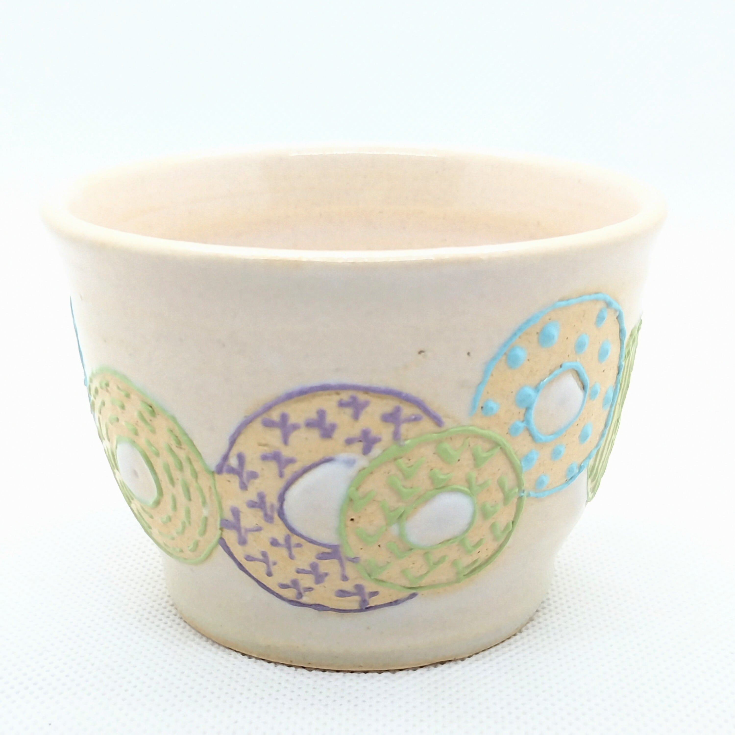 目を引くカラフルなドーナツのような柄が魅力の可愛い器です。手のひらにすっぽり収まるサイズ感で、ごはん茶碗、カフェオレや朝食のヨーグルト、おやつの器として最適です。