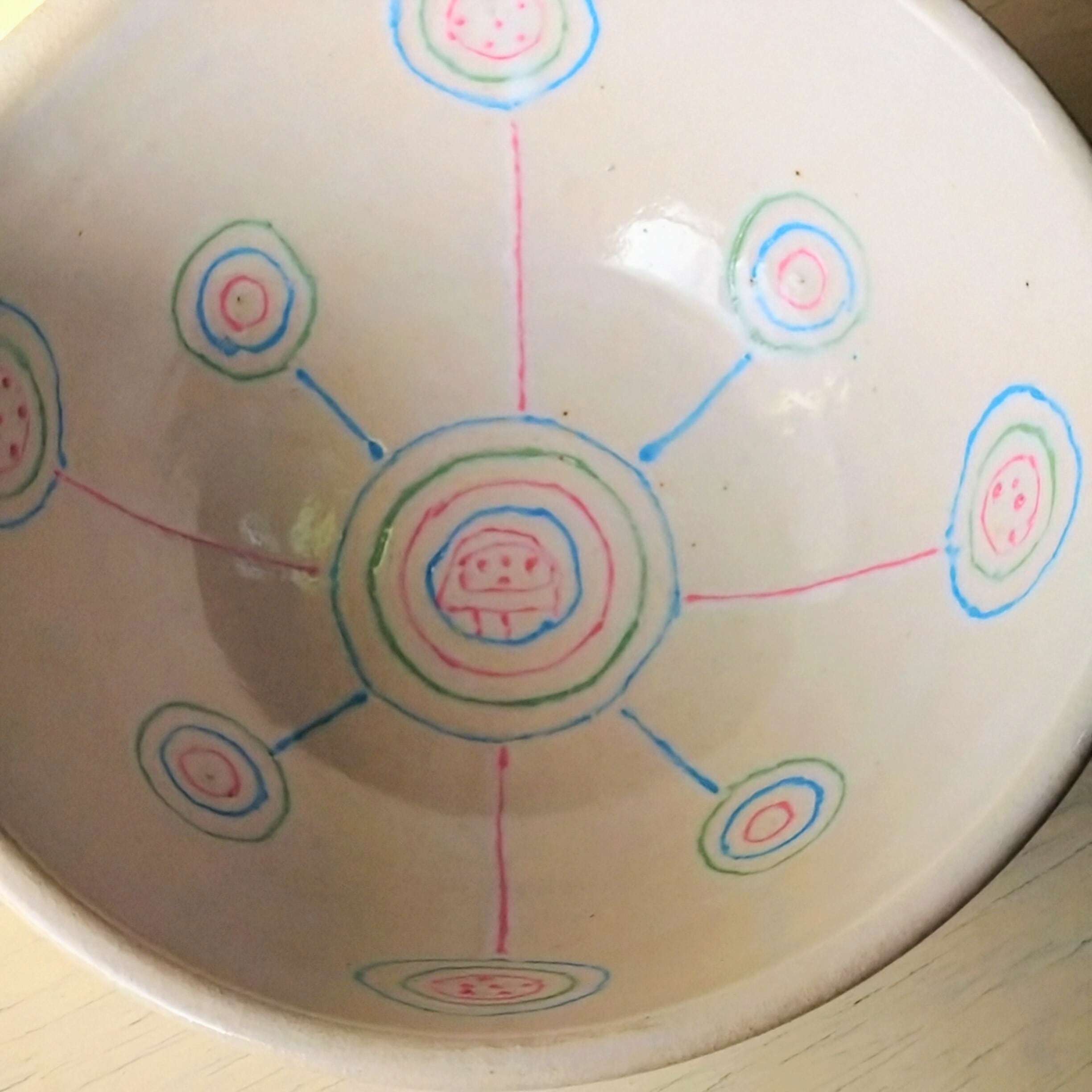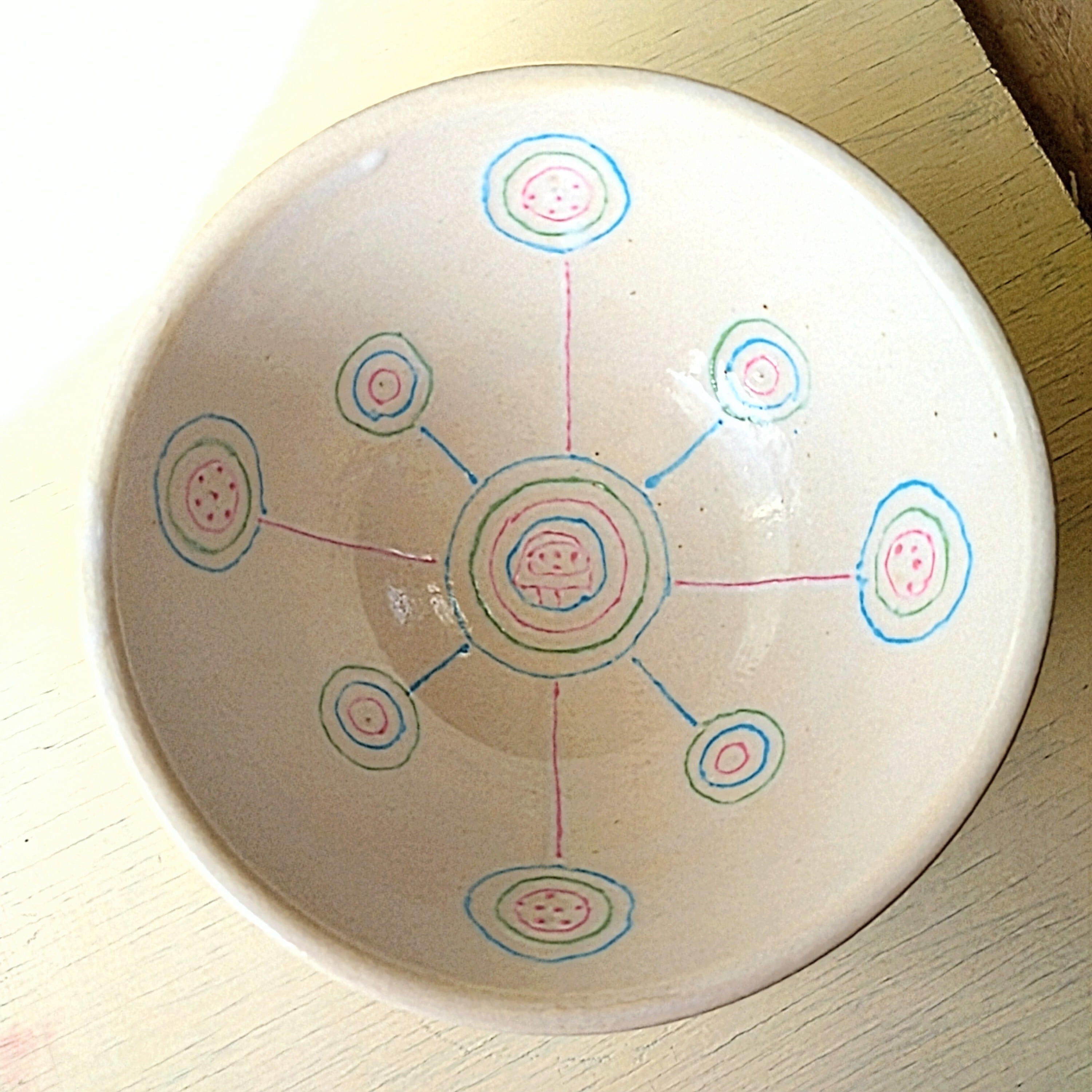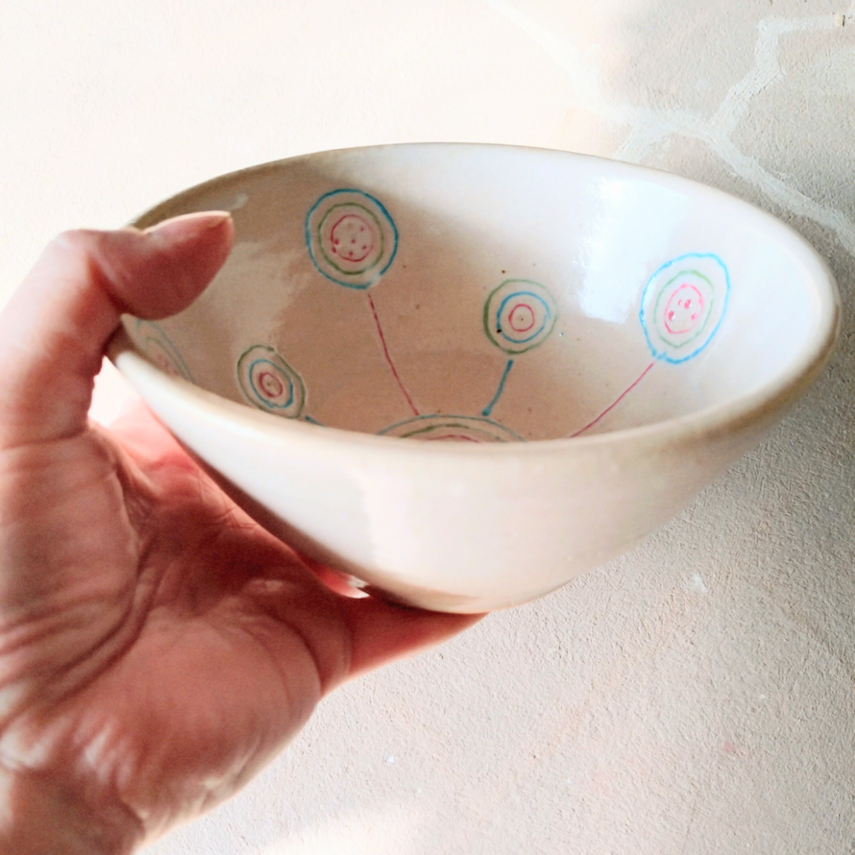 『宙の均衡』中鉢」は、白を基調にしたシンプルながらもカラフルな模様が特徴の中鉢です。